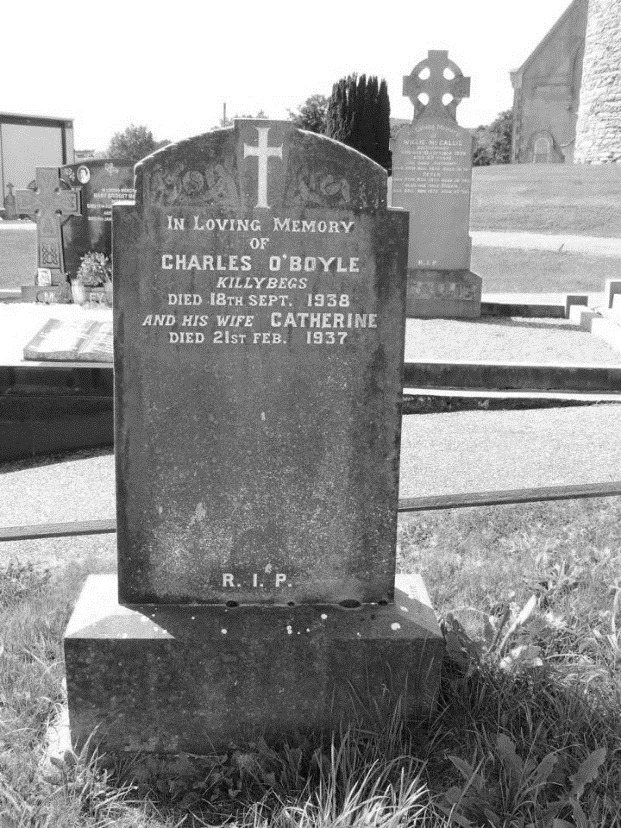 Charles Boyle is buried alongside his wife, Catherine, just inside the gate of Bruckless churchyard; they may have chosen to be buried there rather than in Killybegs so that they would share the grave of children who died young.